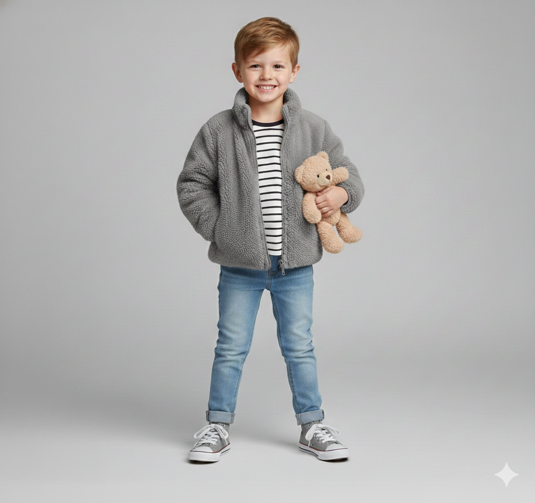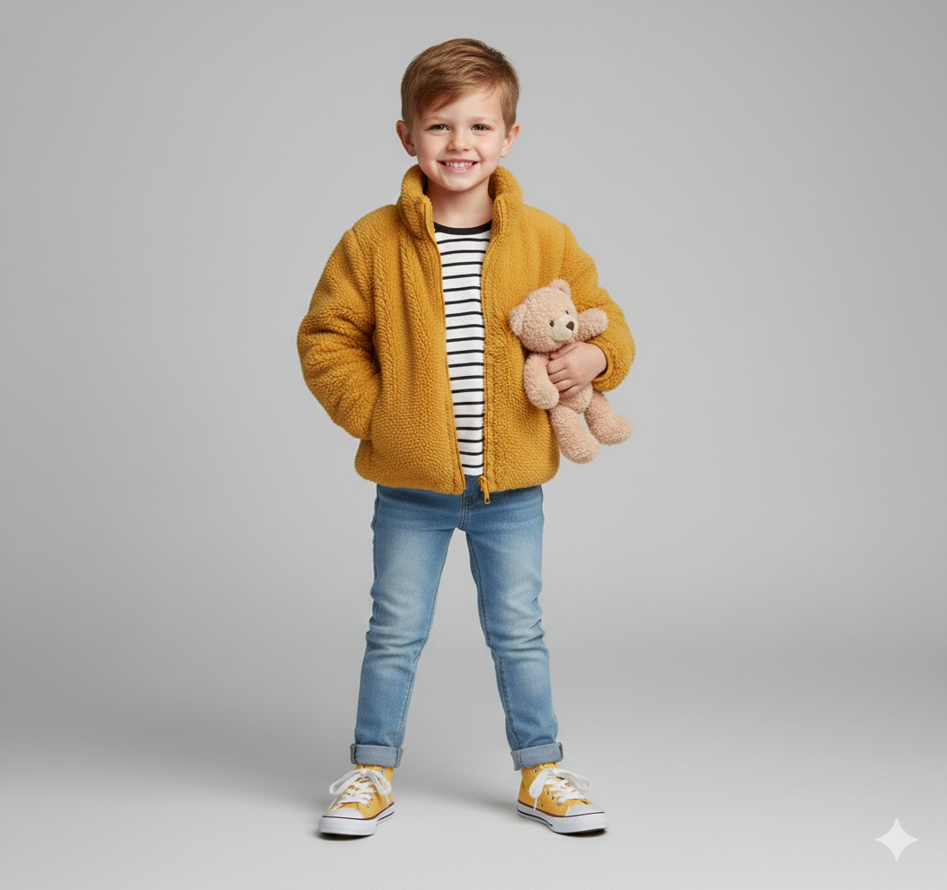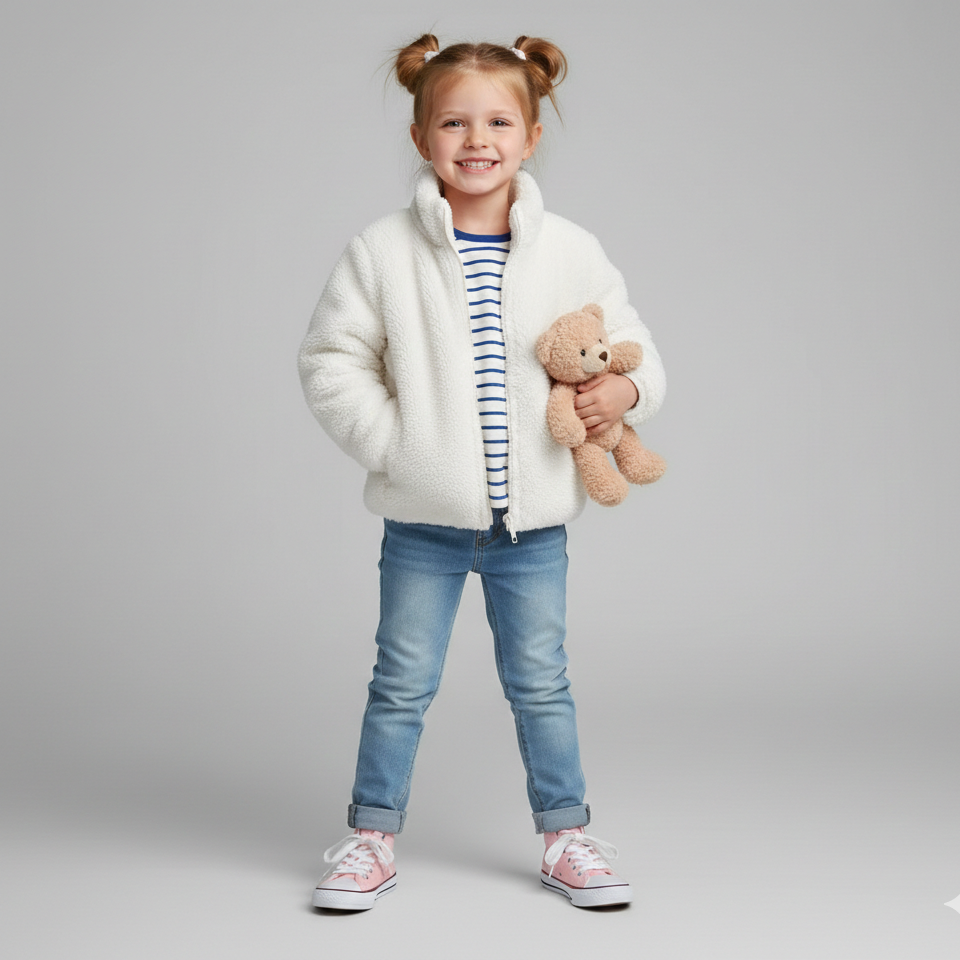 Meet "The Everyday Teddy," the perfect solid color fashion children's plush coat for Autumn and Winter. This simple, stylish, and incredibly soft casual jacket is a must-have piece of toddler outerwear. Designed for both baby girls and boys, it's the go-to layer for instant warmth and effortless style, making it a staple in any little one's wardrobe.