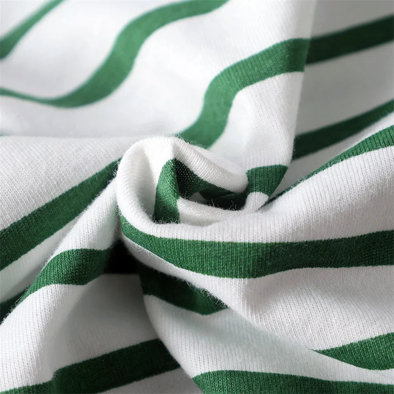 • Dinosaur Set: A classic green-and-white striped tee gets a roar-some update with a three-dimensional dinosaur that hangs playfully from the shirt.