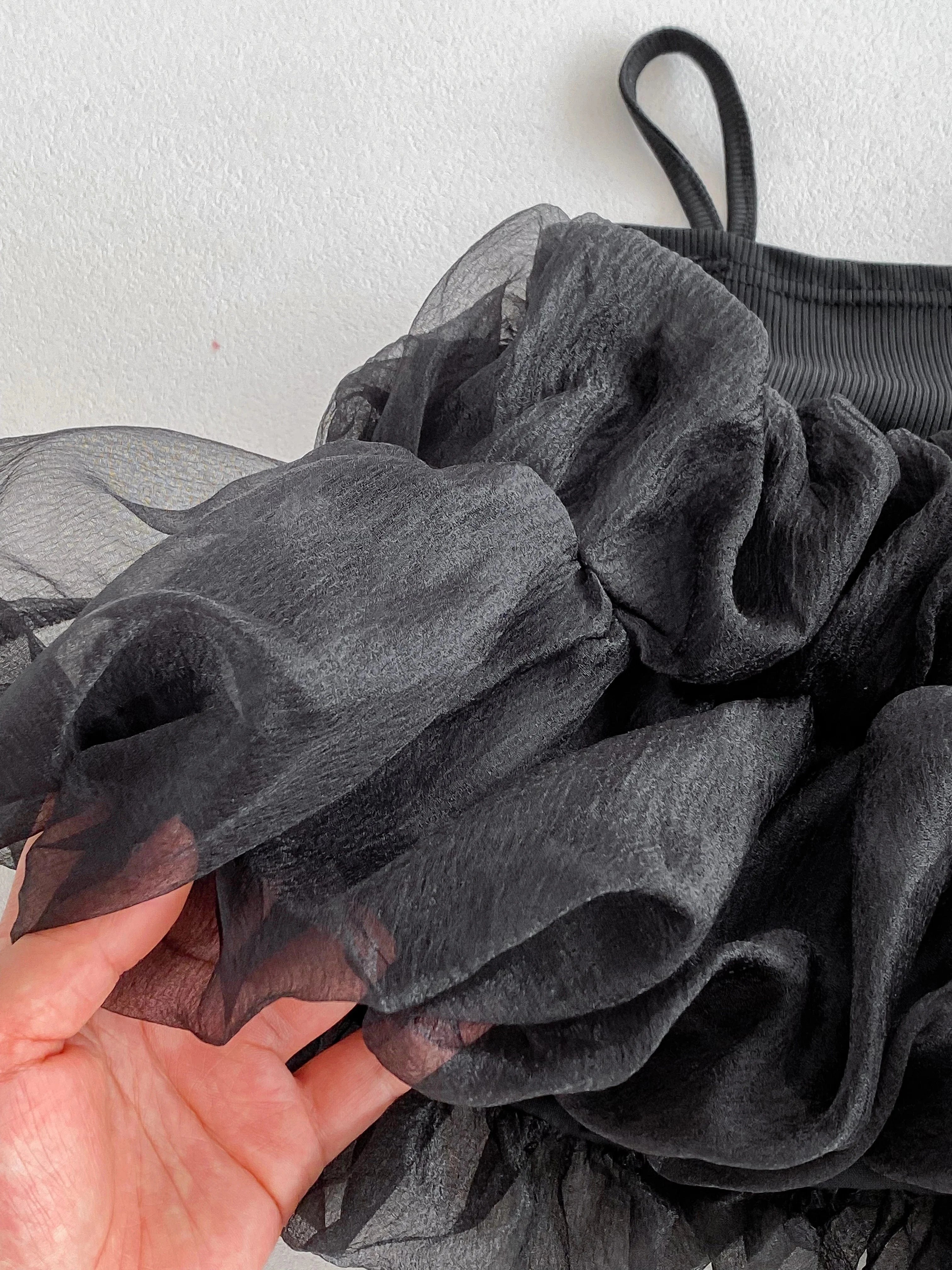 Black Puff Ball Mesh Sling Dress