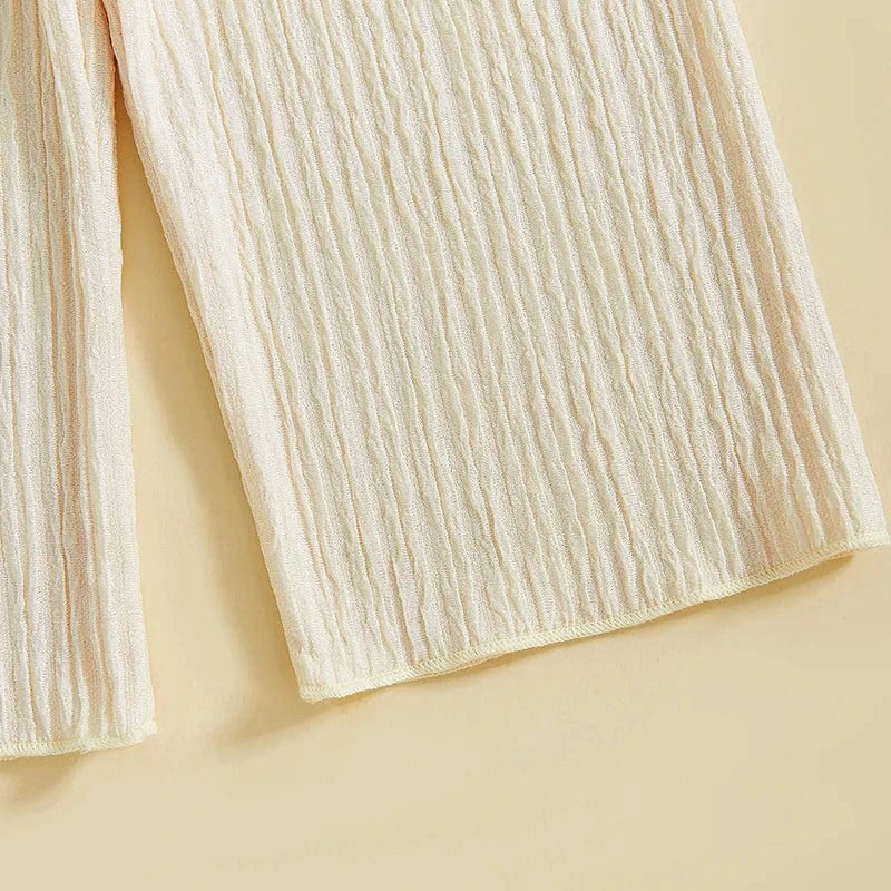 Let your little girl shine in style with this Crochet Camisole & Wide Leg Pants Set! Whether for a summer getaway, a fun day out, or a stylish casual look, this outfit is a must-have for trendy toddlers. Order now before it sells out! 🌿👧✨