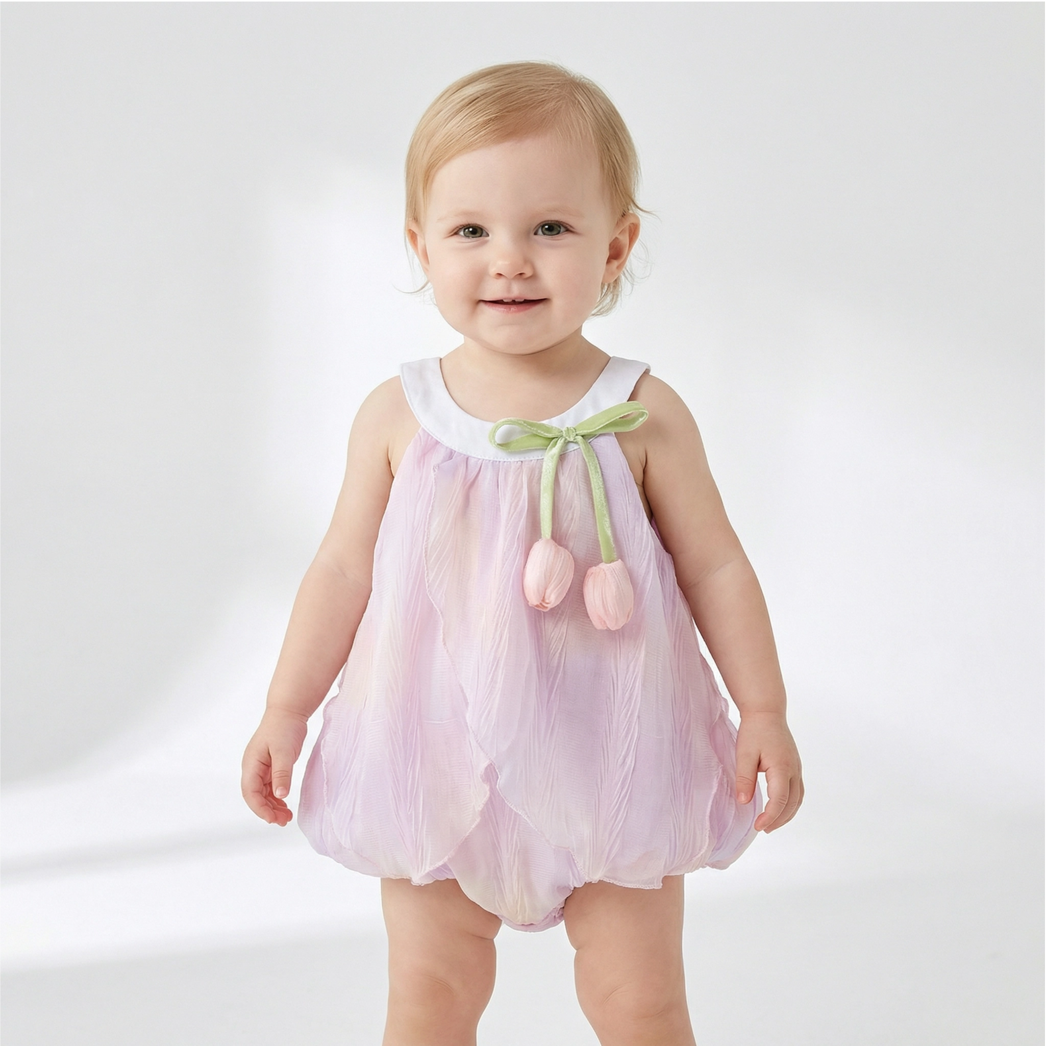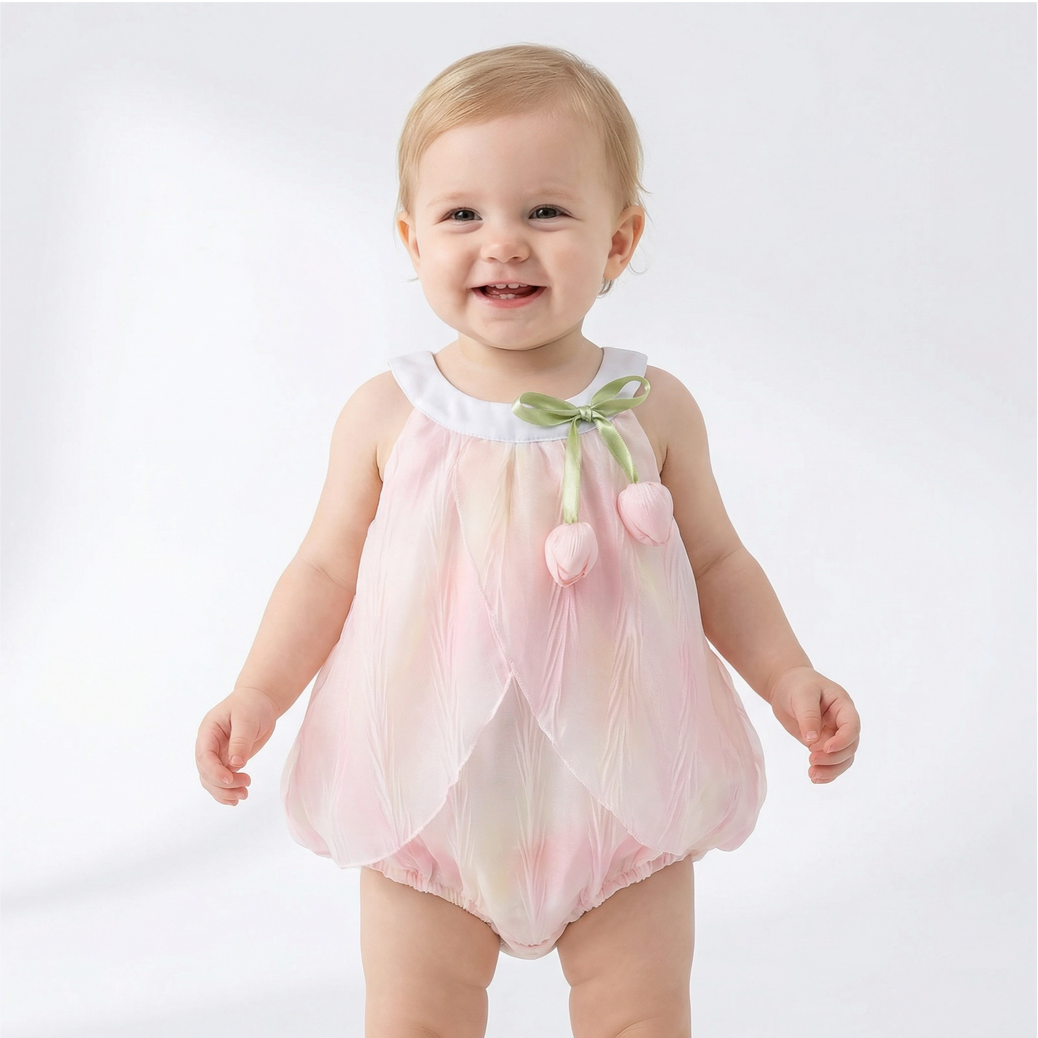 Unique & Whimsical Tulip Decor:This romper is a true work of art. The bodice features a charminghalter slingtie, adorned with two delicate, three-dimensional plushtulipsthat hang like sweet little bells. It's a one-of-a-kind detail that is sure to capture hearts.