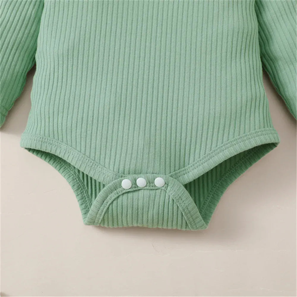 Dress your little one in adorable elegance with this 3-piece baby girl outfit, perfect for spring and autumn days. The set includes a soft long sleeve ribbed romper with delicate lace detail, floral print pants with a matching bow, and a coordinating headband to complete the look. Designed for babies aged 0–18 months, this outfit combines comfort and cuteness for everyday wear, family outings, or special photo moments. A charming blend of style and softness that your baby—and everyone else—will love.